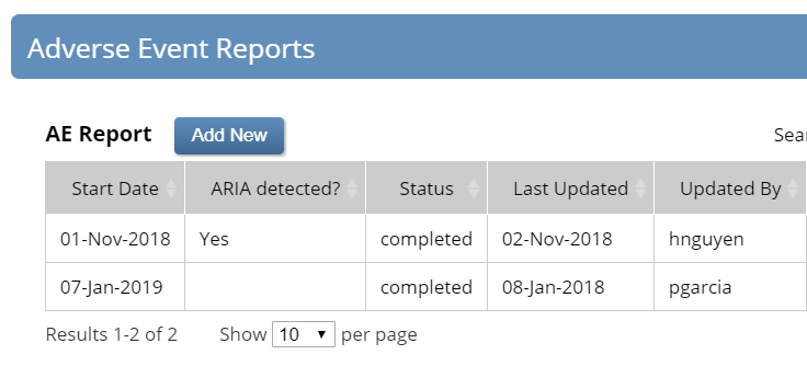• retrieving the start dates of any previous AE whose report indicated ARIA